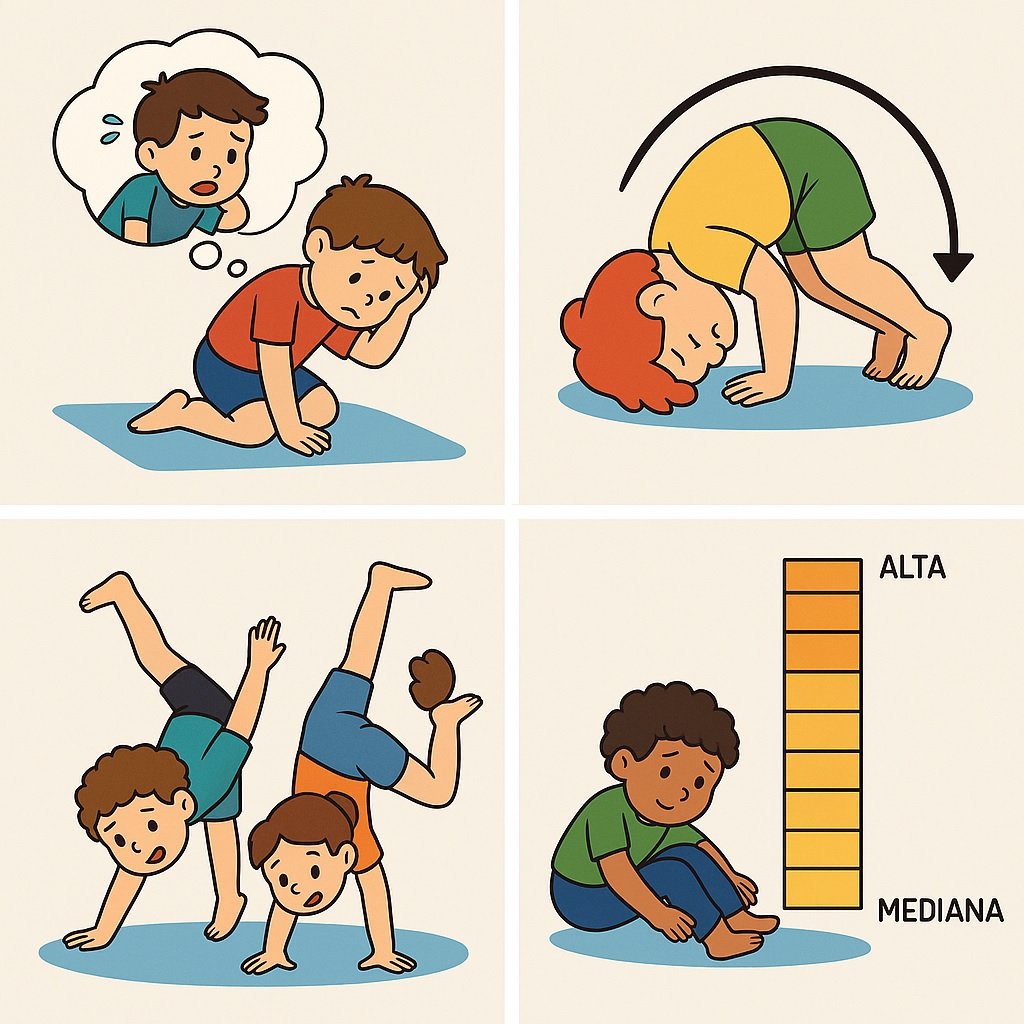 La por de rodar cap endavant: molts infants senten inseguretat i eviten impulsar-se per temor a caure de cap.
