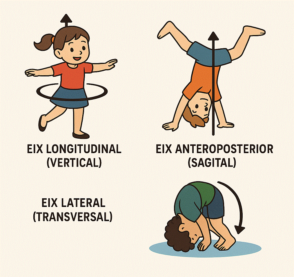 També tenen un component lúdic i motivador, perquè provoquen sensacions noves i divertides. Aquest caràcter, juntament amb el repte de controlar el mareig i l’equilibri, augmenta la confiança dels infants en les seves habilitats. Finalment, les exigències posturals dels girs afavoreixen adaptacions neuromusculars que milloren la maduresa motriu.