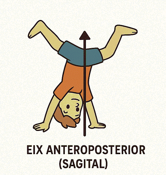 El cos gira al voltant de l’eix horitzontal que va d’un costat a l’altre (esquerra-dreta). Es realitza una rotació en el pla sagital (pla que divideix el cos en esquerra i dreta). En aquests casos el cos s’enrosca sobre si mateix passant per la posició invertida.