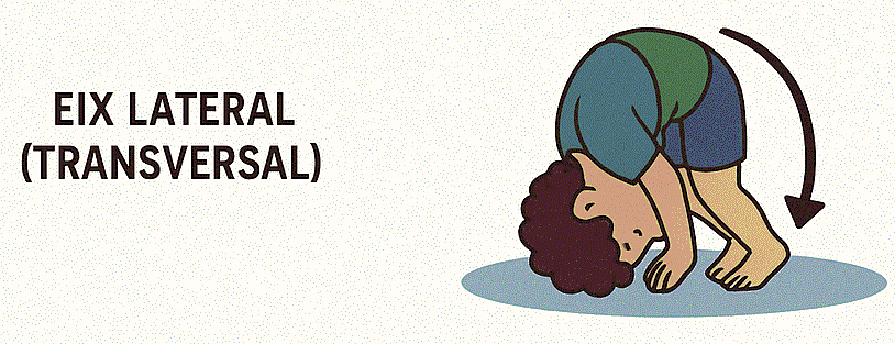 El cos gira al voltant de l’eix que el travessa de davant cap enrere. El moviment ocorre en el pla frontal, i correspon a girs comunament anomenats “rodes laterals” o mitges llunes. En aquests girs, el cos rota de costat recolzant successivament les mans i els peus.