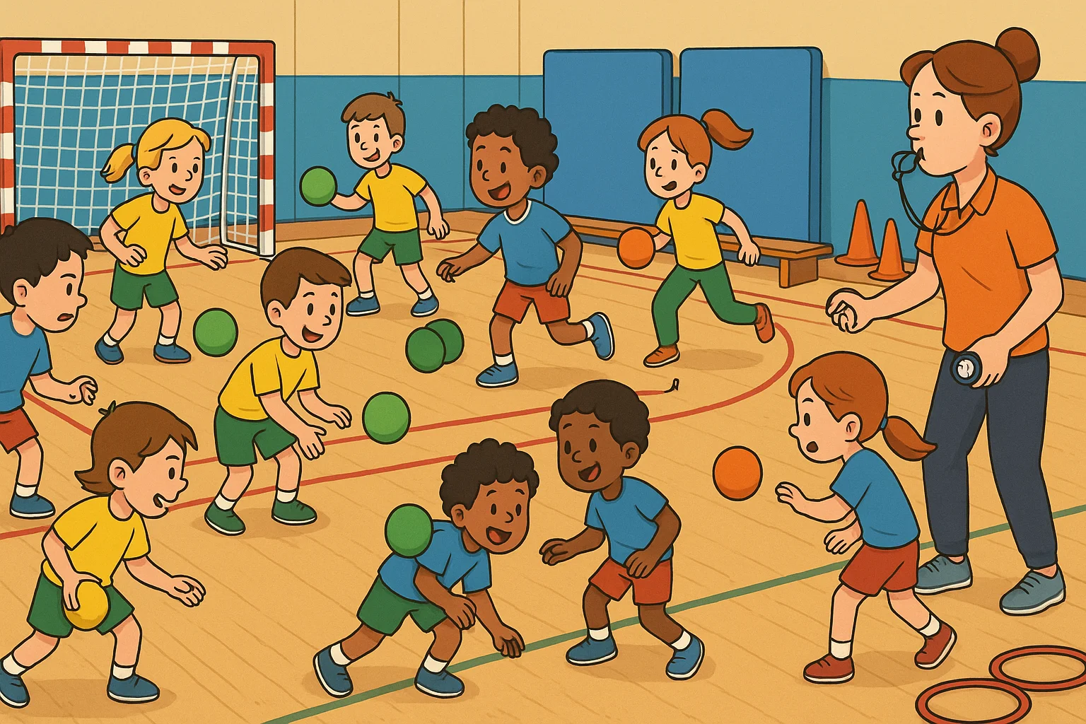 Els cops de pilota és un joc de persecució i precisió amb pilotes d’escuma pensat per a Educació Física a Primària. La seva dinàmica és contínua, sense eliminacions, i amb normes simples que prioritzen la seguretat i l’ordre a la pista.
