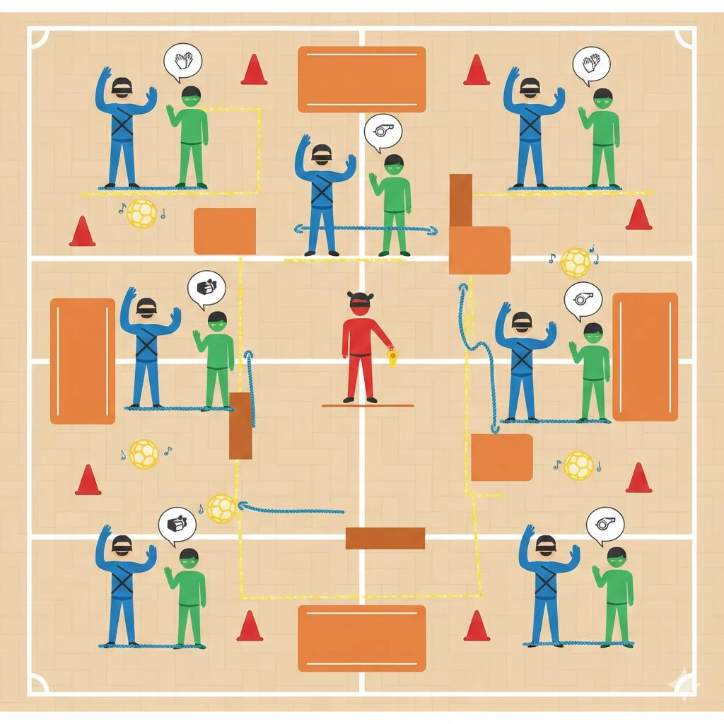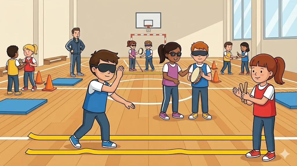 Desenvolupar la percepció espacial i l’ecolocalització bàsica per mitjà de la substitució sensorial, automatitzant les tècniques de protecció corporal i fomentant la confiança compartida a través de codis no verbals.