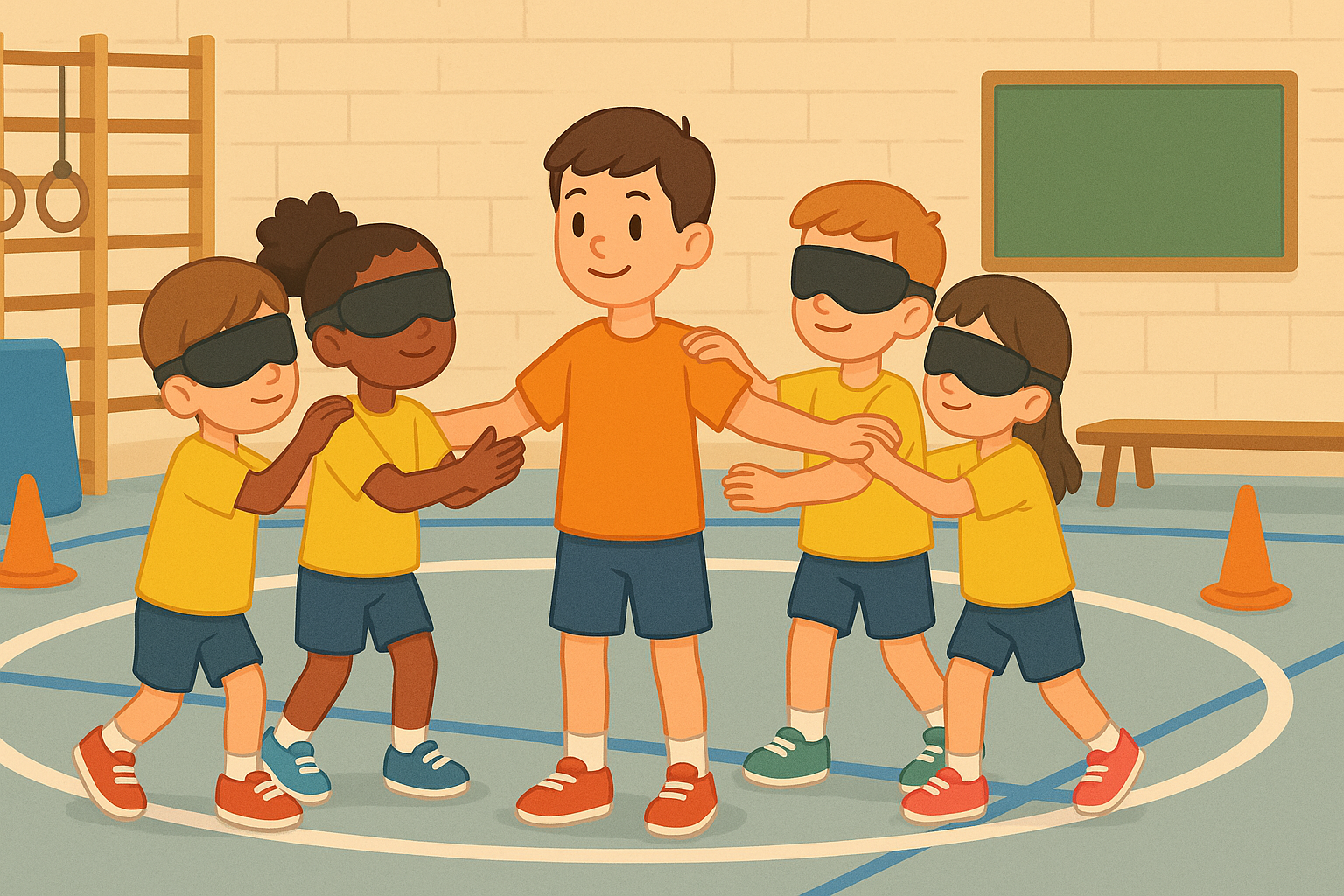 El Pop és una proposta de joc cooperatiu pensada per a les classes d’Educació Física a primària. En aquesta dinàmica, l’alumnat treballa l’orientació a l’espai, la comunicació oral clara i la cooperació entre companys. El més especial és que els nens i nenes experimenten com és moure’s sense veure res, ja que la majoria del grup porta els ulls tapats amb antifaços.
