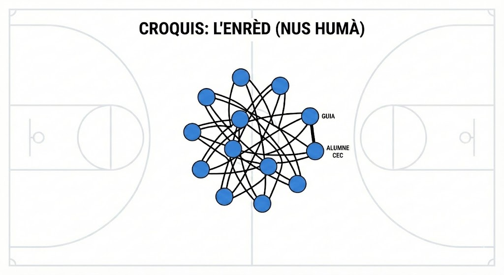 - El segon vincle: Tot seguit, cada alumne dona la mà esquerra a un company diferent de l’anterior, que també estigui al costat oposat o creuat.