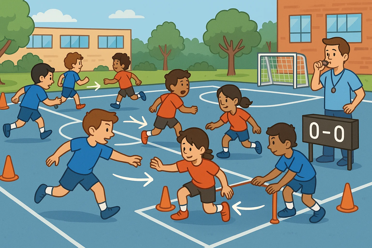 Polis i Cacos és un joc de persecució clàssic, ideal per a les sessions d’Educació Física a Primària. Dos equips s’enfronten amb rols oposats: uns intenten capturar i portar a la “presó”, mentre que els altres esquiven i alliberen companys.