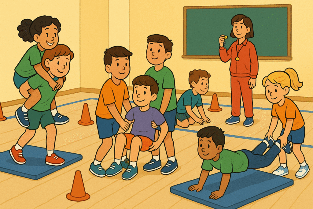 L’activitat dels transports cooperatius a educació física afavoreix la salut, el gaudi i la regulació de l’esforç: quan un grup planifica, comunica i executa un transport, no només es mou, sinó que aprèn a cuidar-se i a cuidar els altres. A primària, aquest tipus de tasques potencia la confiança, la responsabilitat compartida i la consciència corporal, aspectes clau per a un estil de vida actiu i segur a llarg termini.