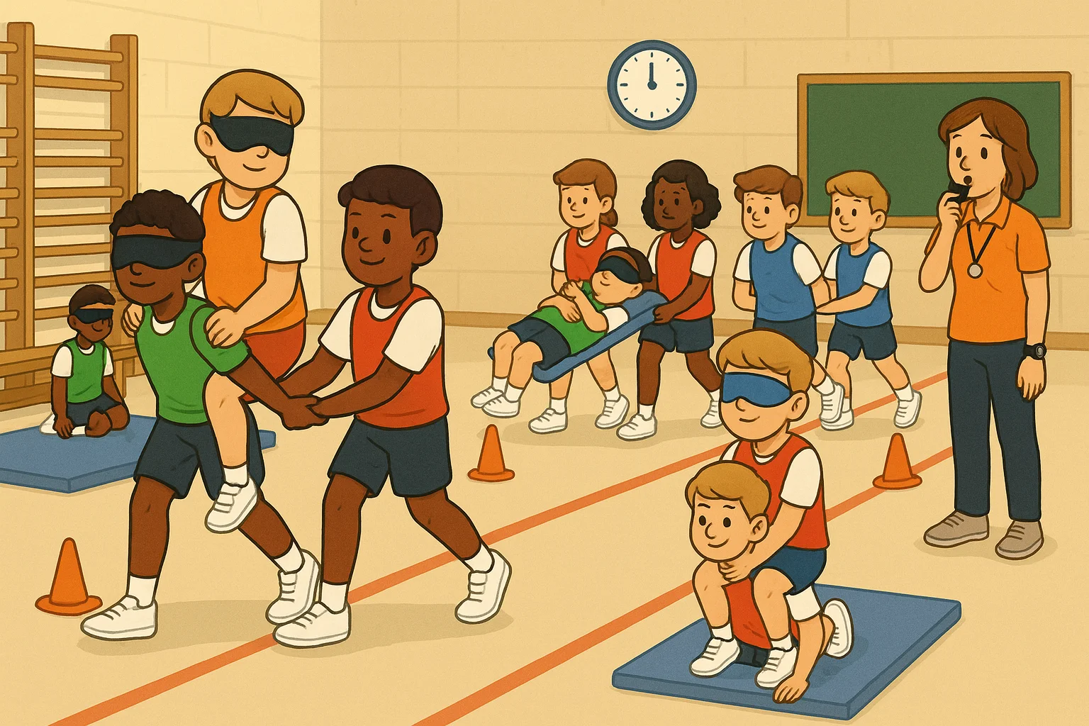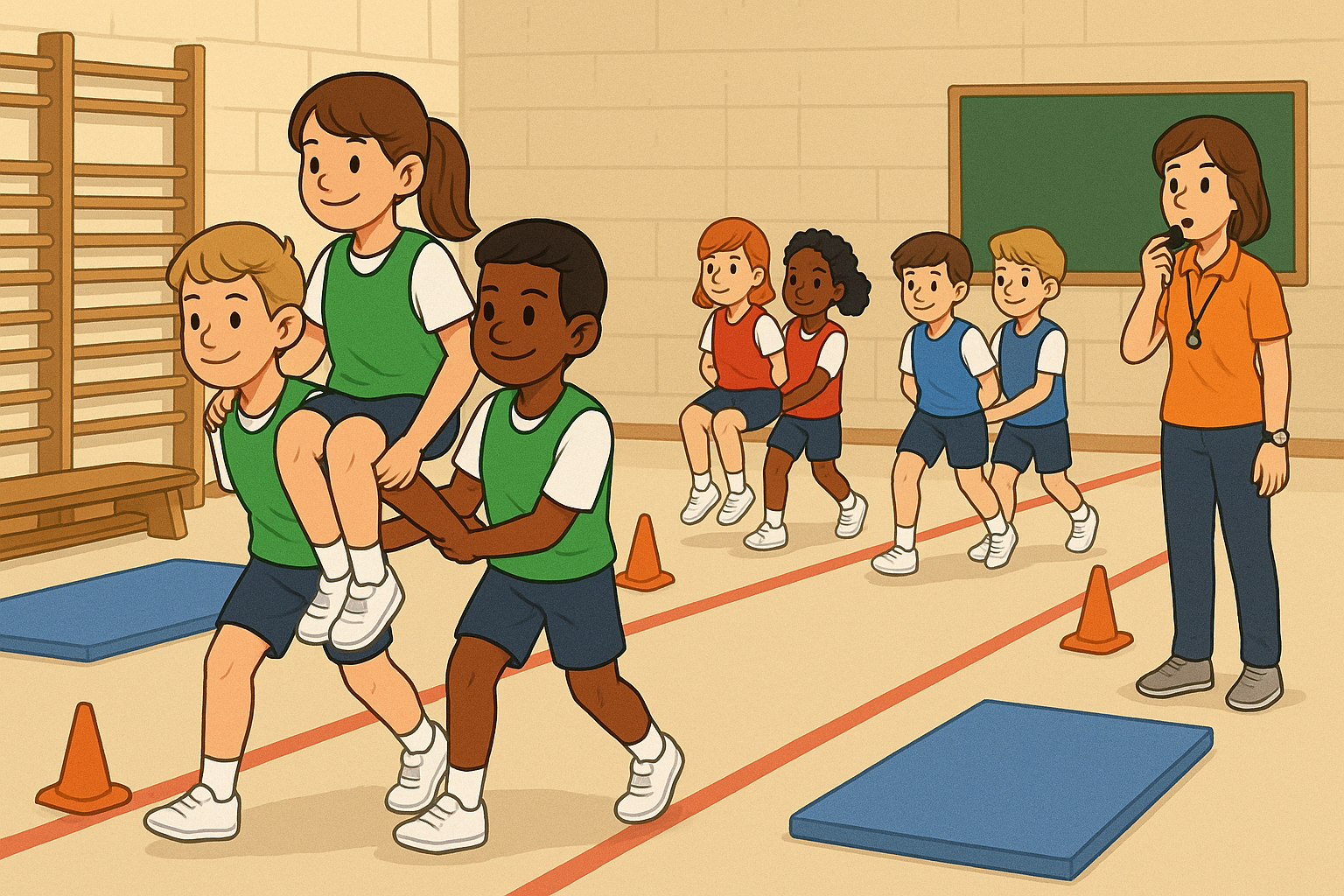 L’activitat dels transports cooperatius a educació física afavoreix la salut, el gaudi i la regulació de l’esforç: quan un grup planifica, comunica i executa un transport, no només es mou, sinó que aprèn a cuidar-se i a cuidar els altres. A primària, aquest tipus de tasques potencia la confiança, la responsabilitat compartida i la consciència corporal, aspectes clau per a un estil de vida actiu i segur a llarg termini.